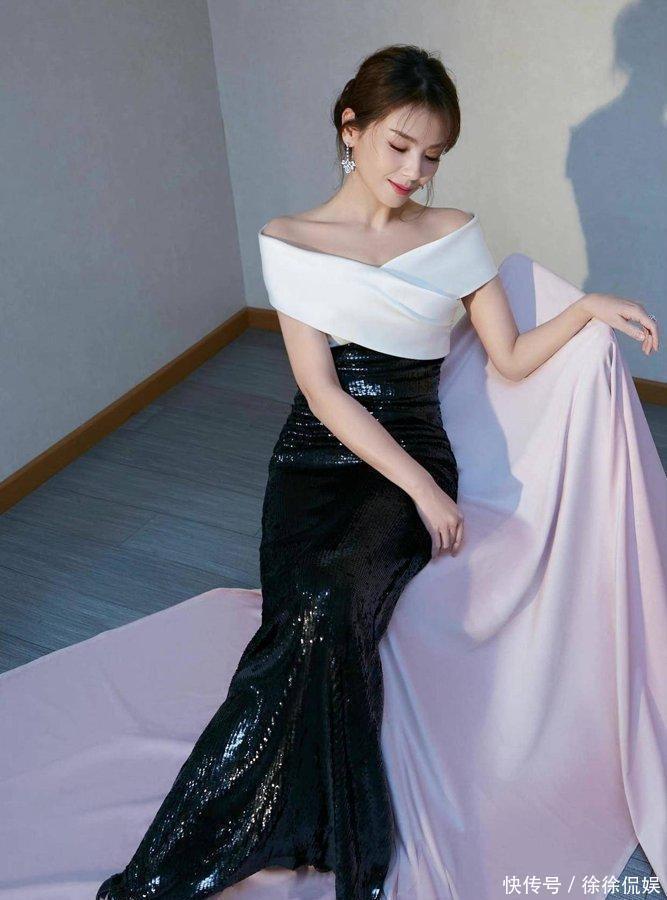 比如她穿的黑露肩连衣裙,看着低调吧?露肩设计刚好露出一点肩膀,把黑色的闷破了,既性感又不暴露;还有黑白拼的亮片裙,黑色闪片像碎钻,白色领口像加了条珍珠项链,哪儿会乏味?